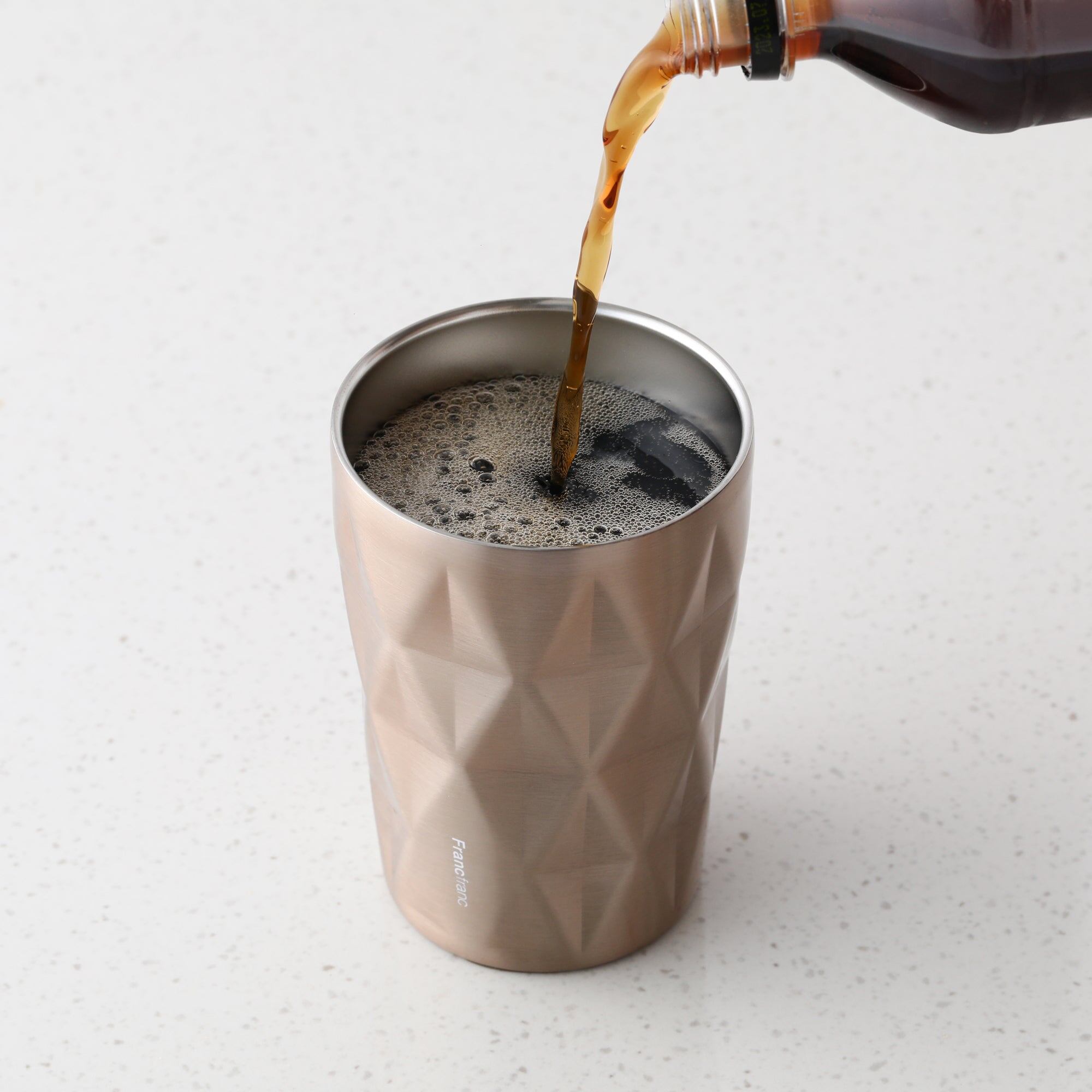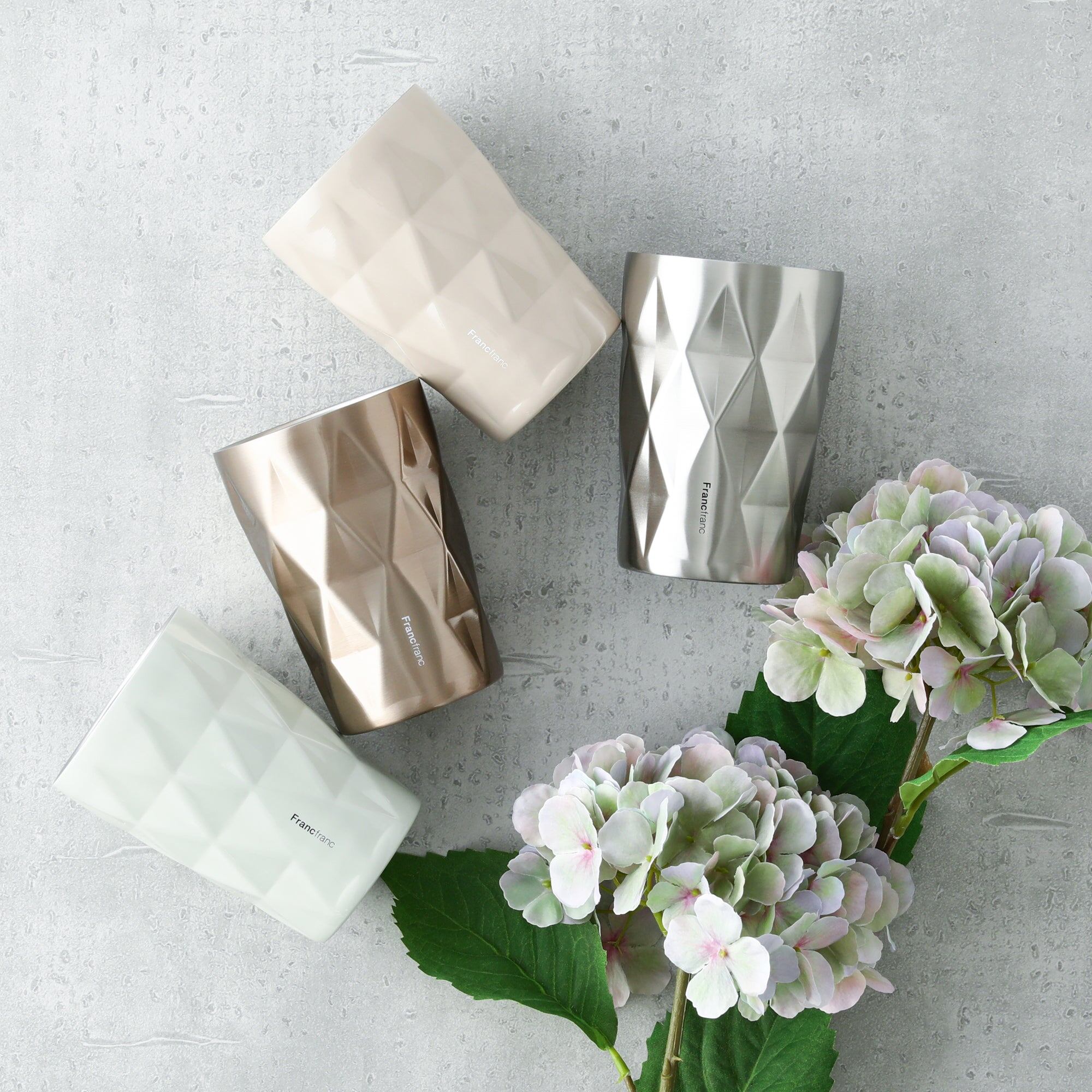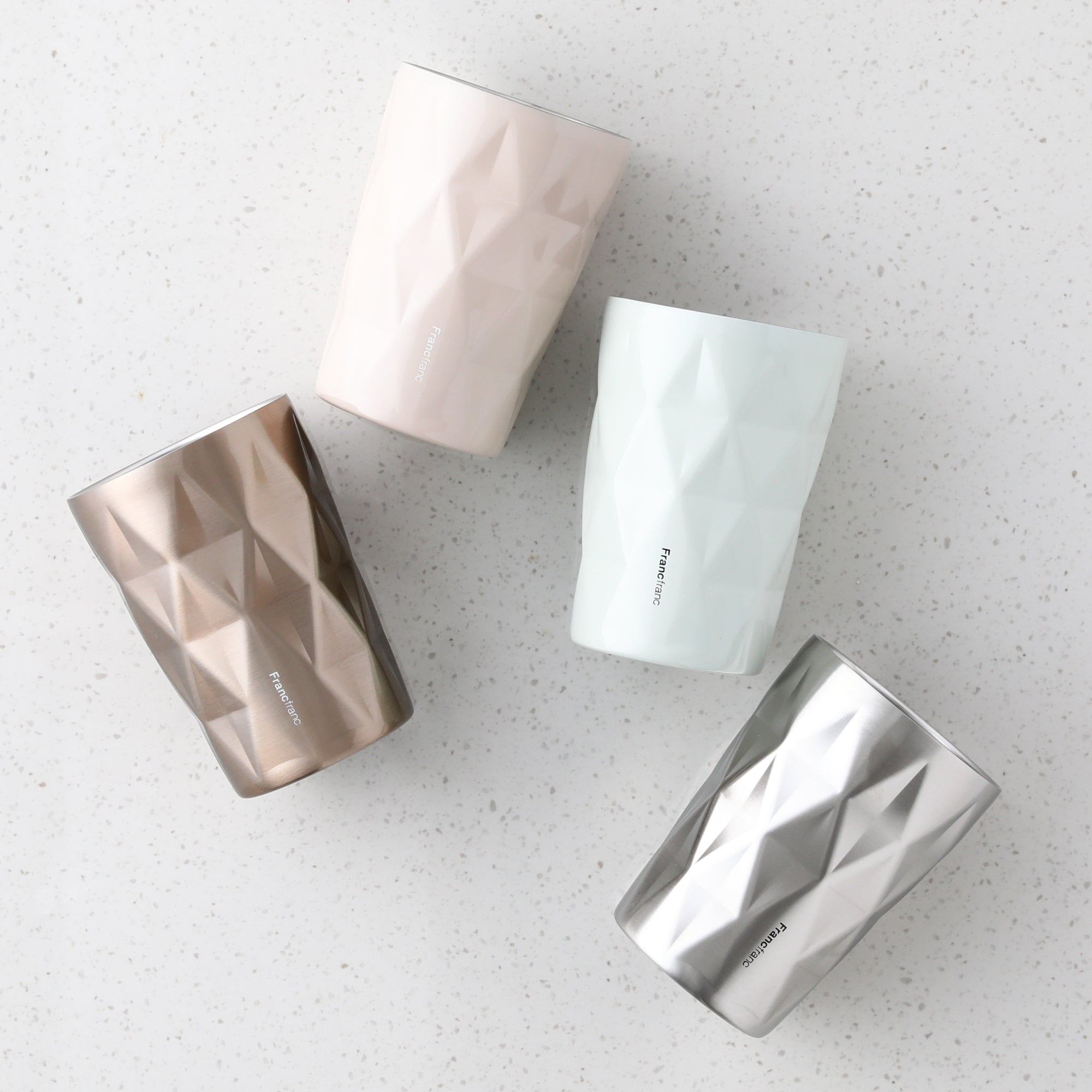 テイクアウトしたドリンクやコンビニコーヒーなどを、カップごと入れられる真空二重構造のステンレスカップに新柄登場です。