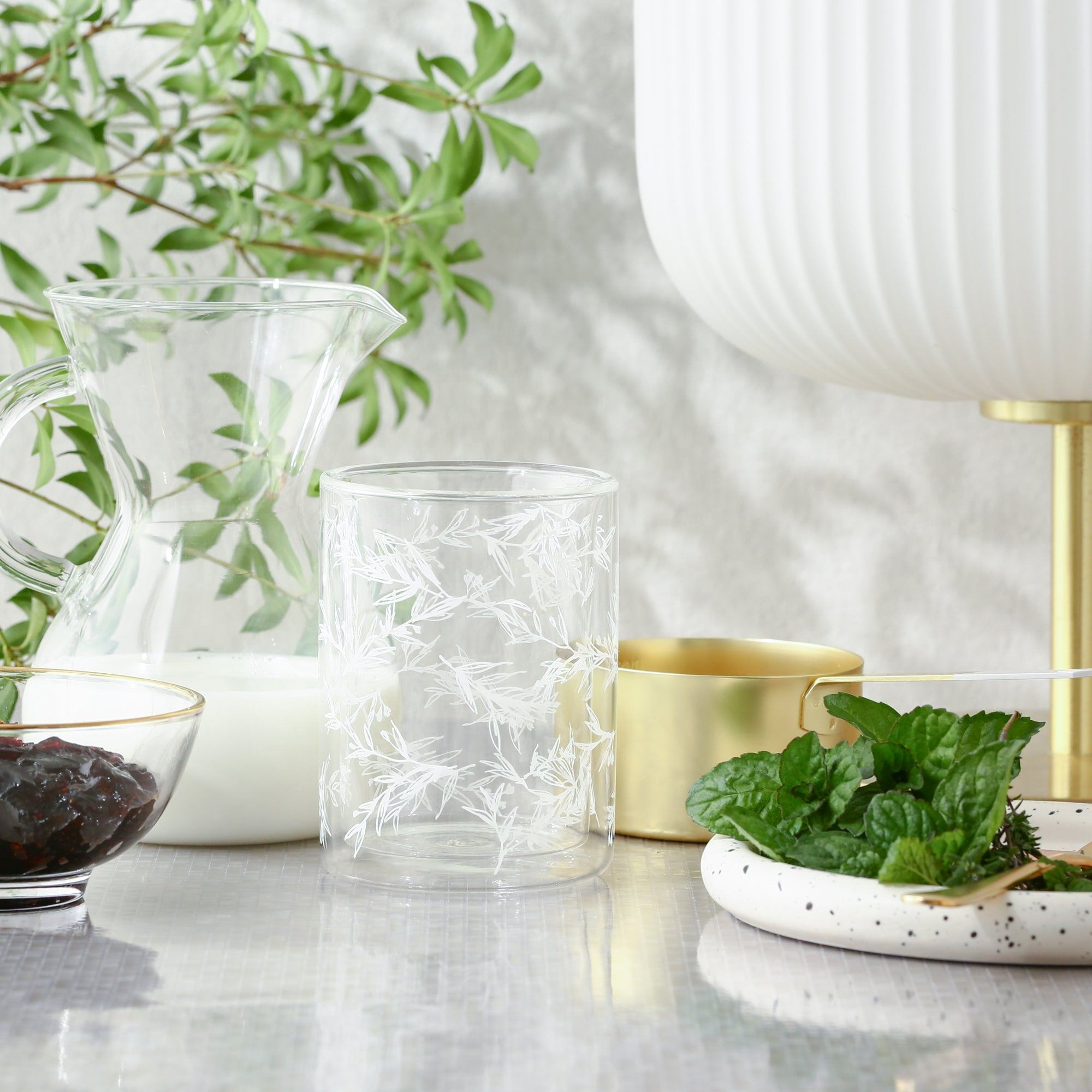 フラワー&リーフ ダブルウォールグラス(2個セット)