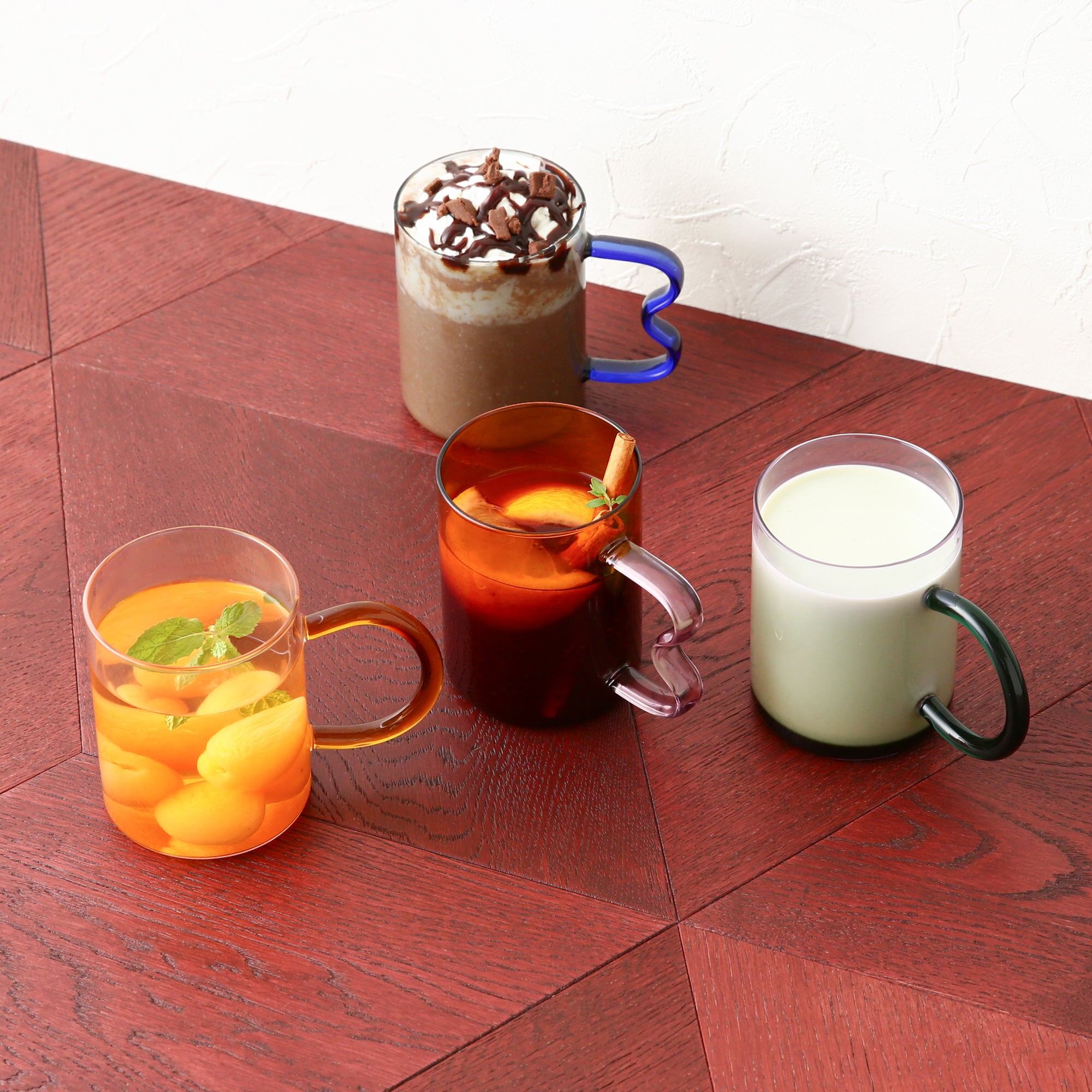 ドリンクが綺麗に見える人気のクリアなデザイン。入れるドリンクによって表情を変えるのが可愛らしく、おもてなしの場面でも喜ばれます。