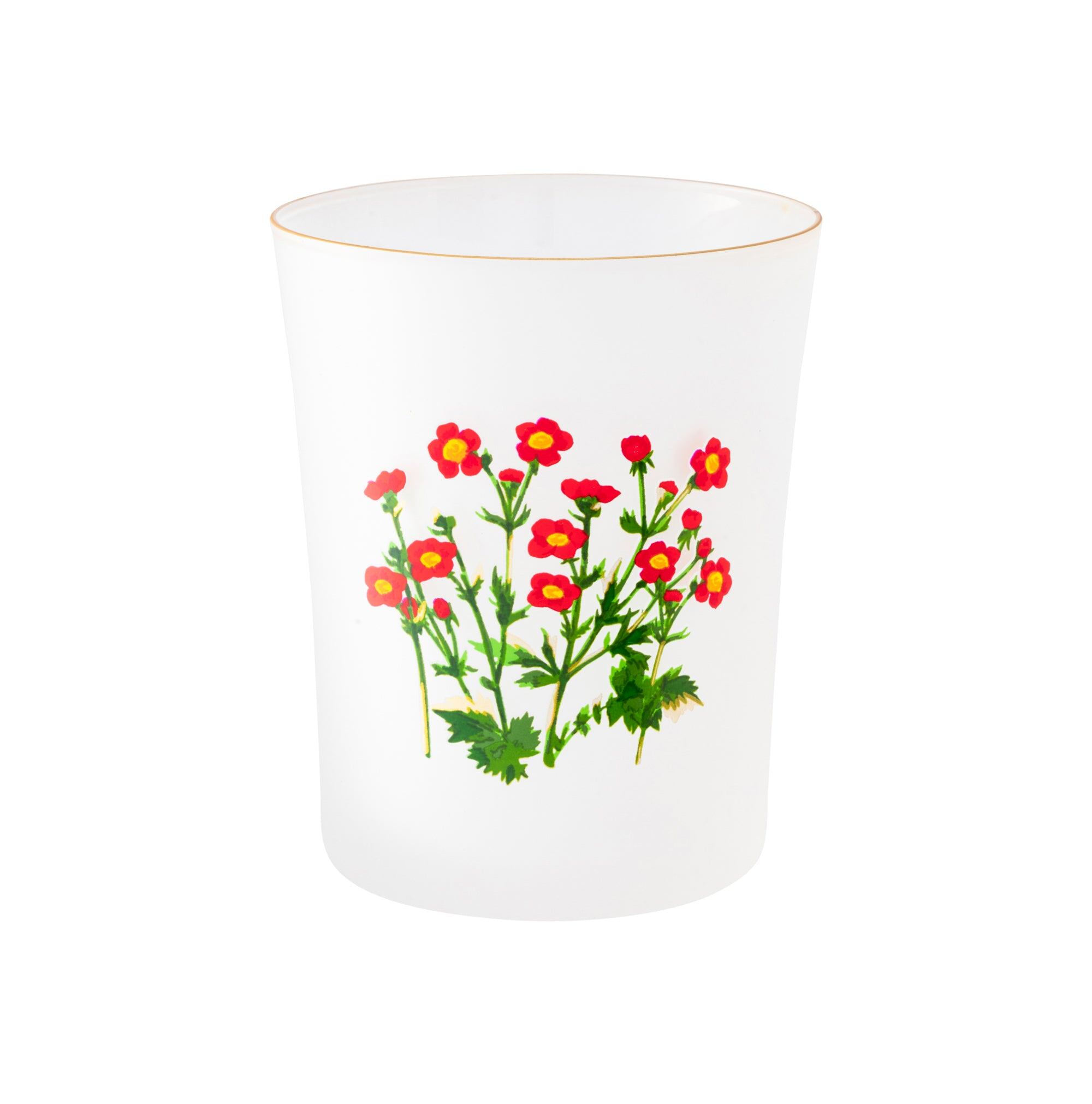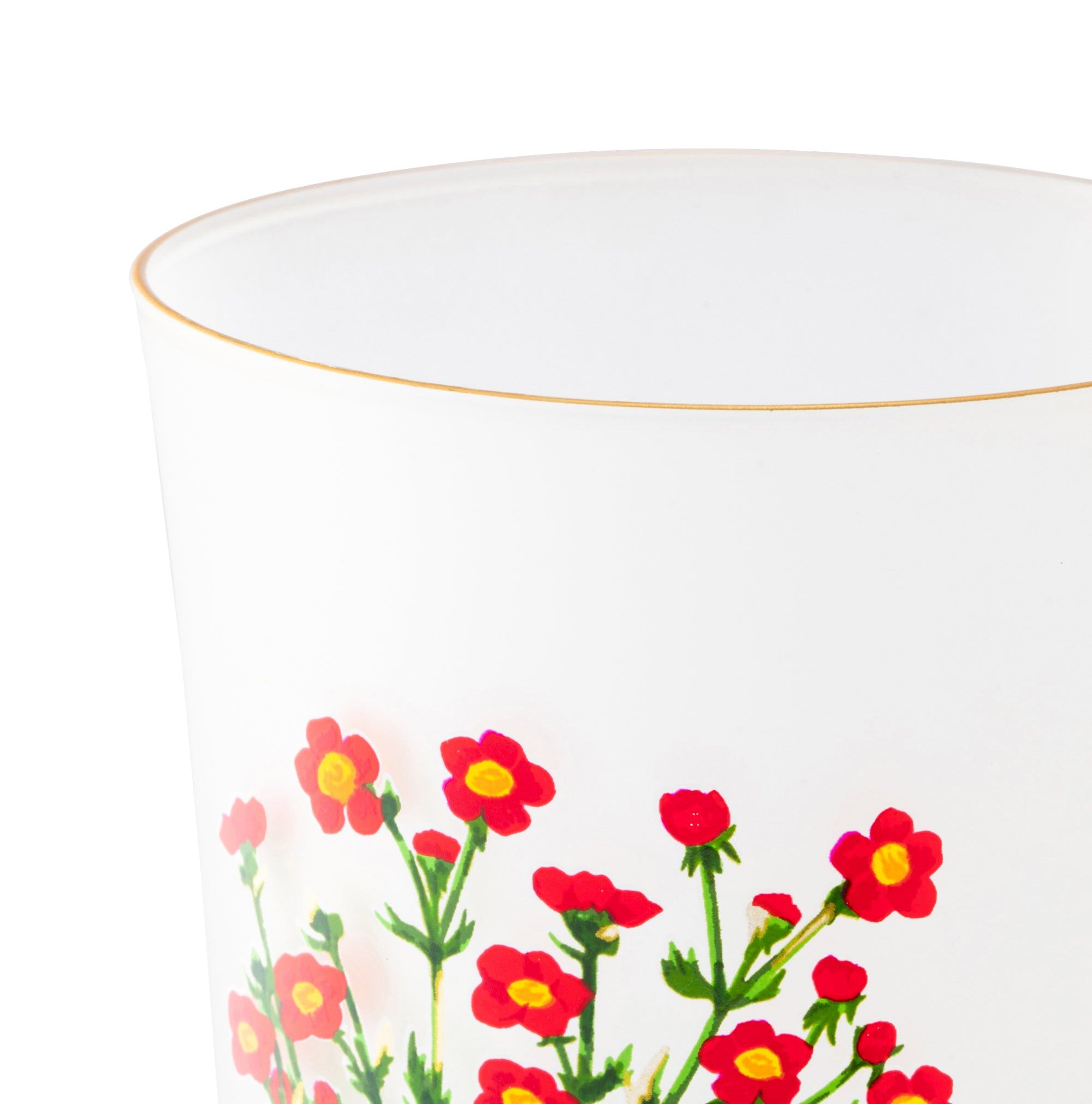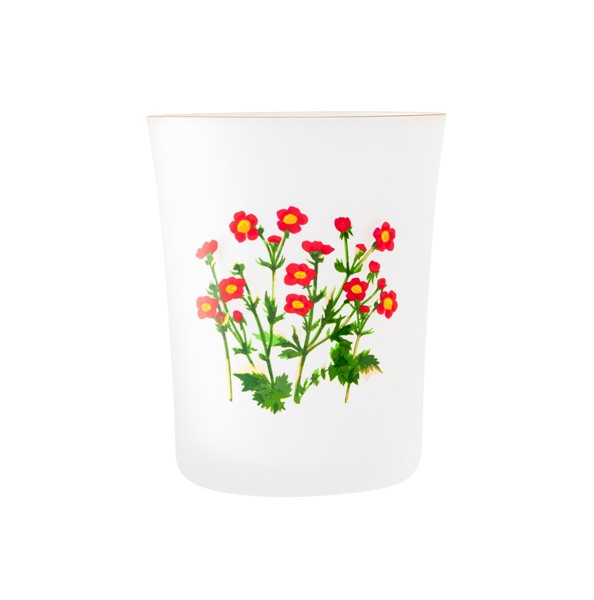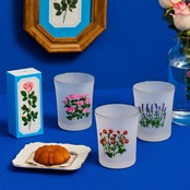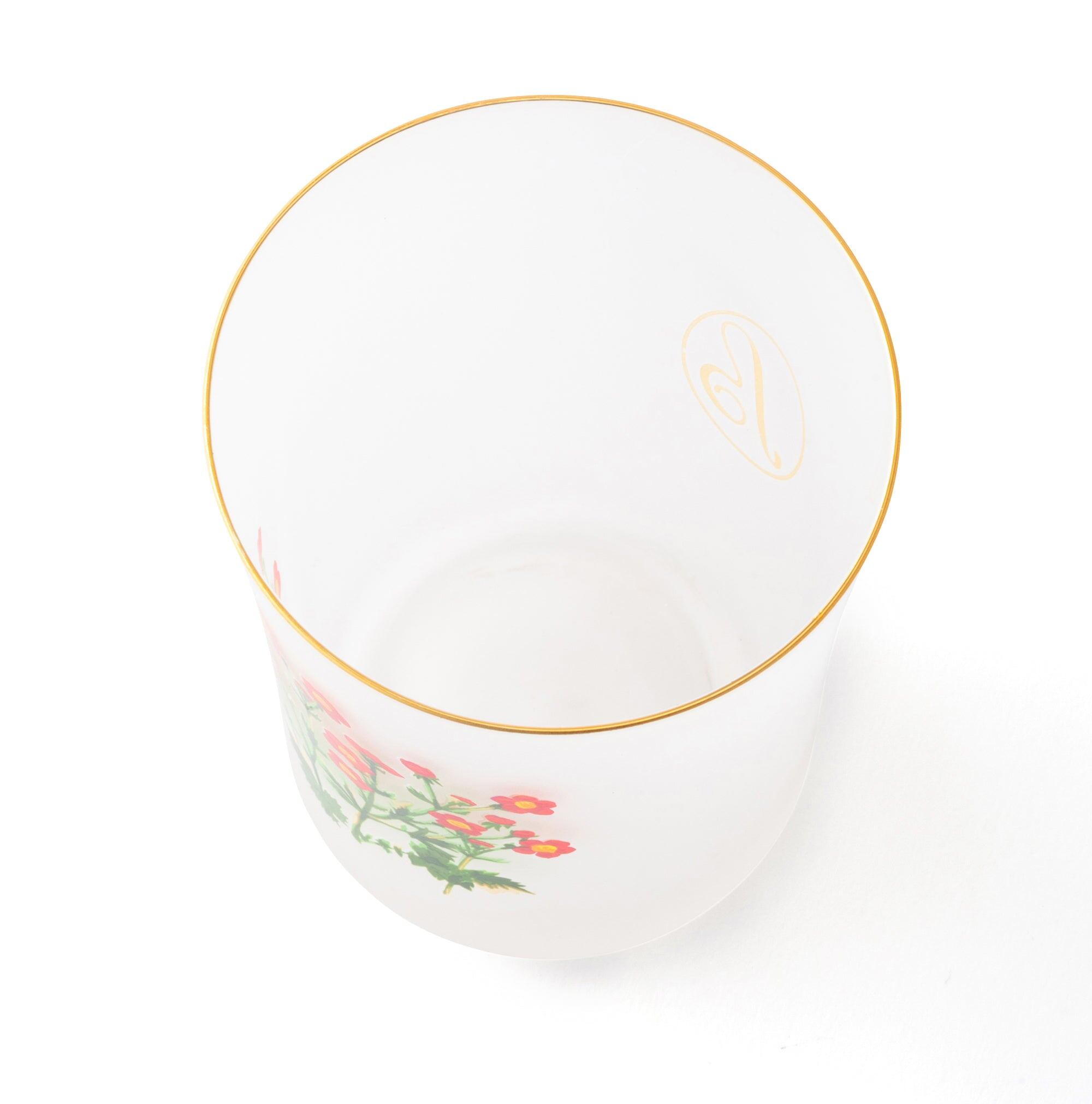レトロなお花のイラストが思わずきゅんとしてしまうような可愛らしさ。縁にあしらったゴールドカラーと柔らかなくもりガラスの組み合わせが上品です。